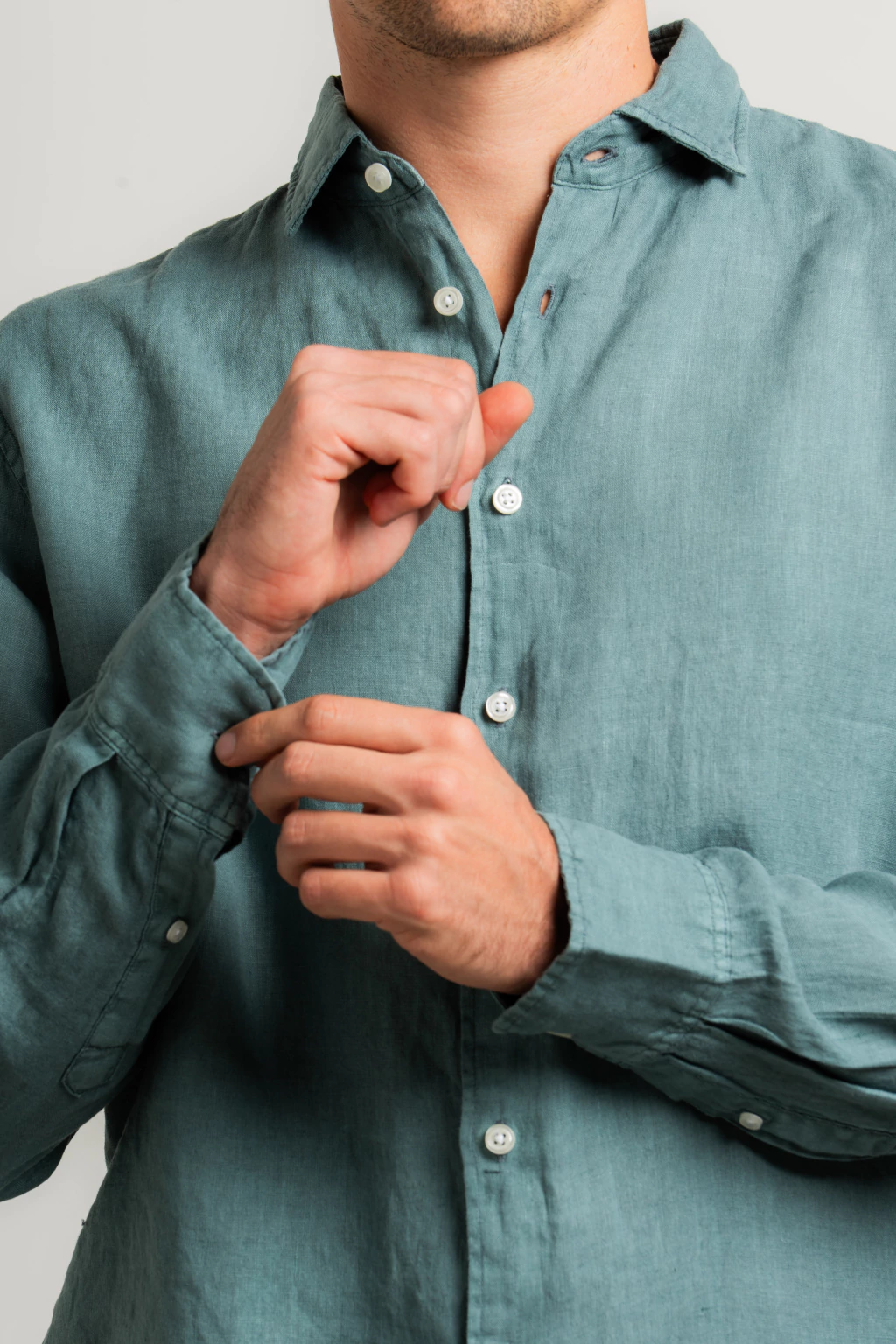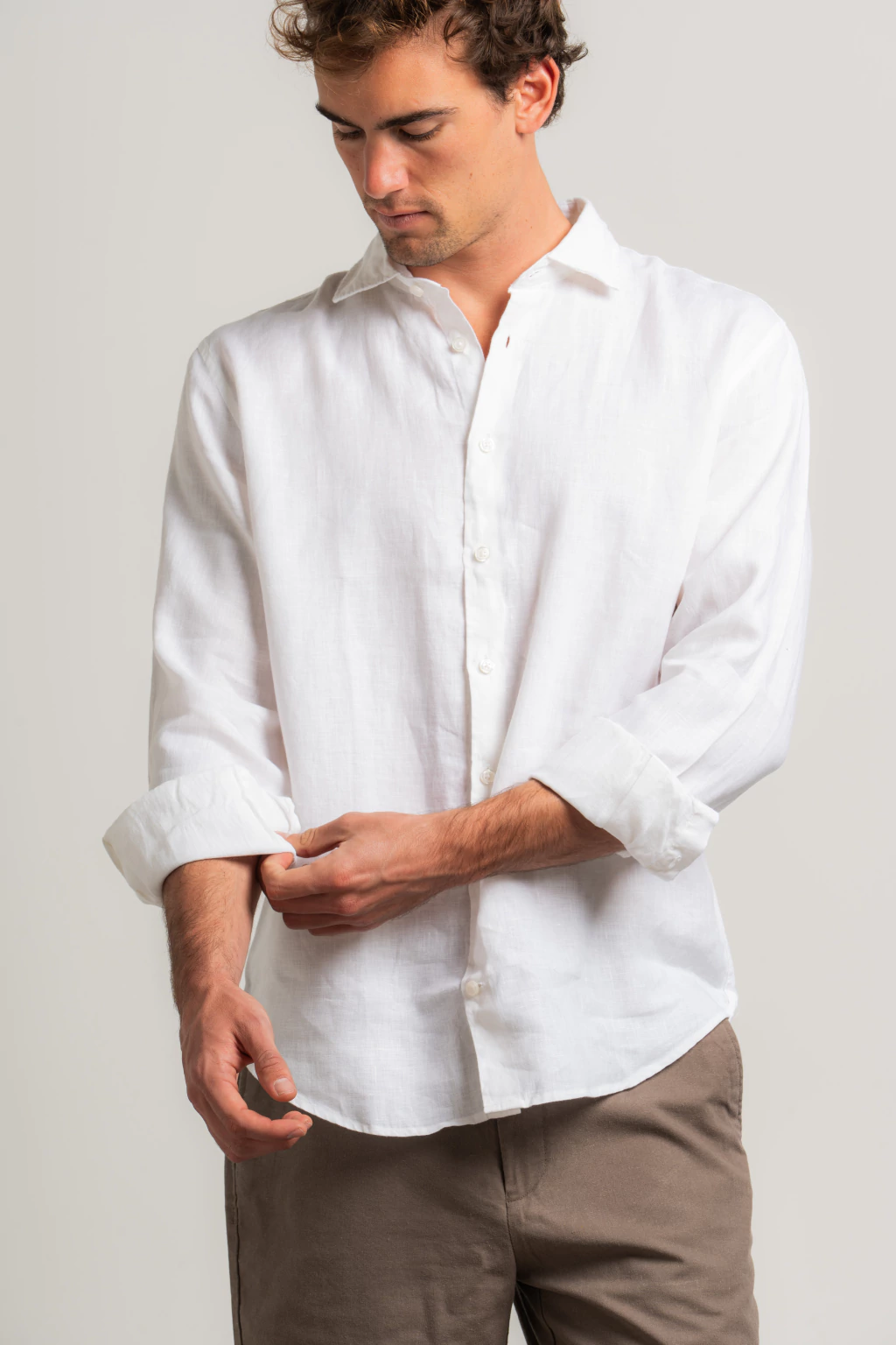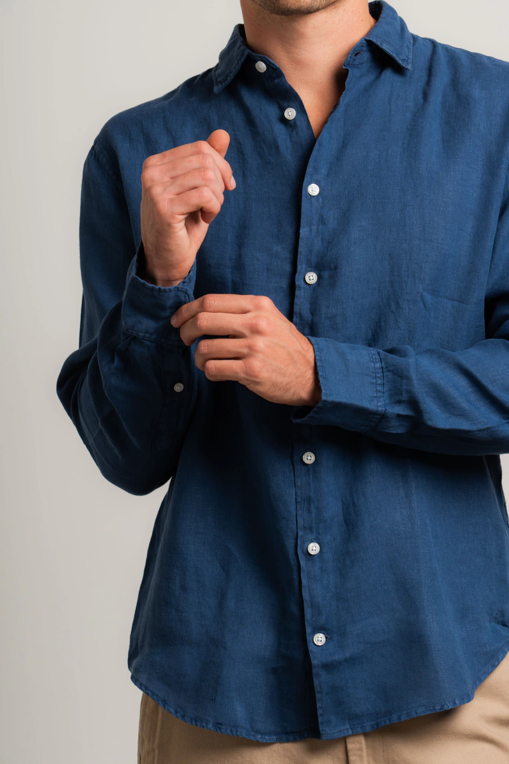 Camisa de manga larga con una caída ligera y fluida, confeccionada en lino 100% natural. Diseño original que garantiza un look moderno, sumamente cómodo y versátil. Esta prenda paso previamente por un lavado stone. Ideal para el uso diario, ya que combina fácilmente con pantalones cortos y chinos, pero también lo suficientemente elegante para ocasiones especiales.