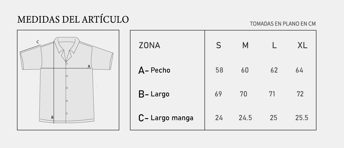 Camisa de manga corta con cuello cubano y corte cuadrado ligeramente más corto.